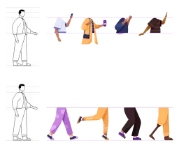 Moreover, we also paid attention to the distinctions between age groups. Children’s characters feature slightly larger heads and facial features, reflecting their youthful appearance. On the other hand, elderly characters exhibit a leaning posture with shoulders slightly bent inward, capturing the unique characteristics of their gait.