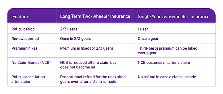 Here is a snapshot of the comparison between Long Term and Single Year Two-wheeler Insurance plans: