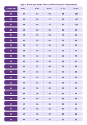 - Finally, you can refer to the table below to find out your Wealth Number to achieve financial independence. You can simply refer to the cell that corresponds to the row with your current age and the column having the age at which you wish to achieve financial independence. That’s the amount in Lakhs that you will need for every ₹ 1 Lakh of annual expense.