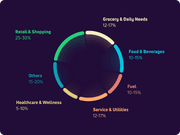 Based on data gathered for the month of September 2021, we observed Indians tend to splurge on retail & shopping — which accounts for over 25% of all spending in a month. This is followed by grocery & daily needs as well as service & utilities at over 12%, closely followed by food & beverages at over 10%.