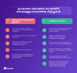 പ്രധാന ഓർമ്മപ്പെടുത്തൽ — PhonePe ഒരിക്കലും രഹസ്യാത്മകമോ വ്യക്തിഗതമോ ആയ വിവരങ്ങൾ ആവശ്യപ്പെടില്ല. PhonePe-യിൽ നിന്നുള്ളതാണെന്ന് അവകാശപ്പെടുന്ന മെയിലുകൾ phonepe.com ഡൊമെയ്നിൽ നിന്നുള്ളതല്ലെങ്കിൽ അവഗണിക്കുക. തട്ടിപ്പാണെന്ന് നിങ്ങൾ സംശയിക്കുന്നുവെങ്കിൽ, ദയവായി ഉടൻ അധികാരികളെ ബന്ധപ്പെടുക.
